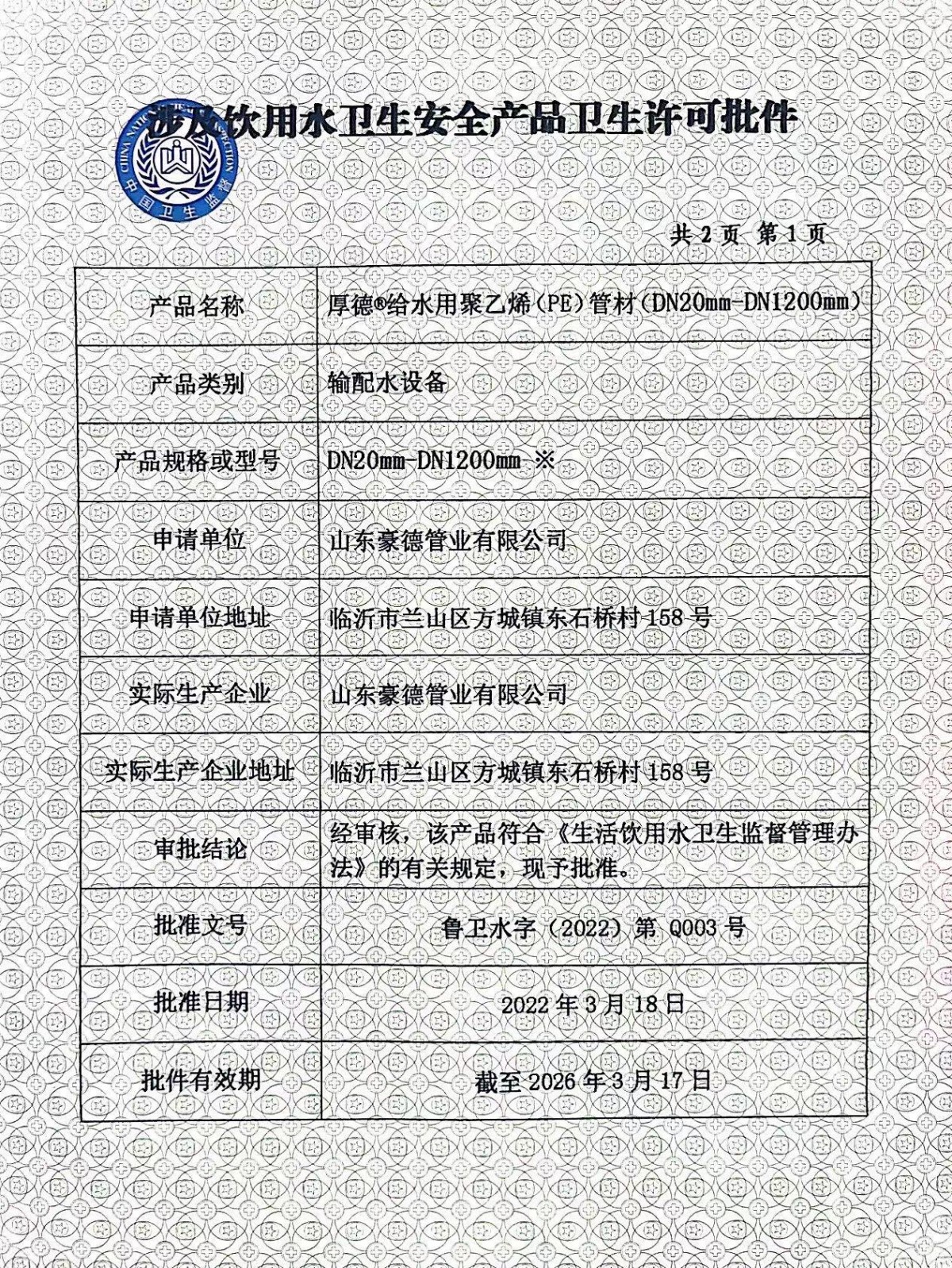 山東豪德管業有限公司豪德——專業pe管材生產廠家公司是聚乙烯PE管材管件生產建設基地,年產各類PE管材近億噸,綜合性能好。